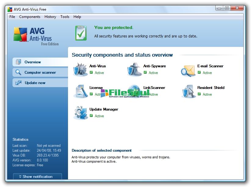 AVG Anti-Virus Free Edition offers an anti-virus solution that can protect your system and data from multiple viruses and other malware that abound on the Internet.