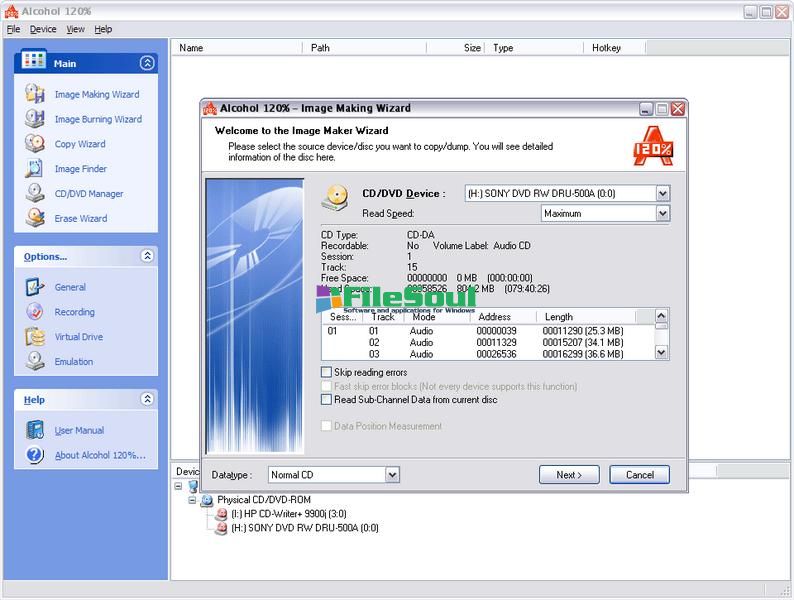 Alcohol 120% is compatible with more than 99% of drives available. The software supports many types of image files, including MDS, CCD, CUE, ISO, CDI, BWT, BWI, BWS, BWA, etc.
