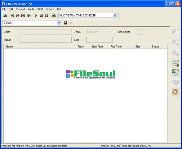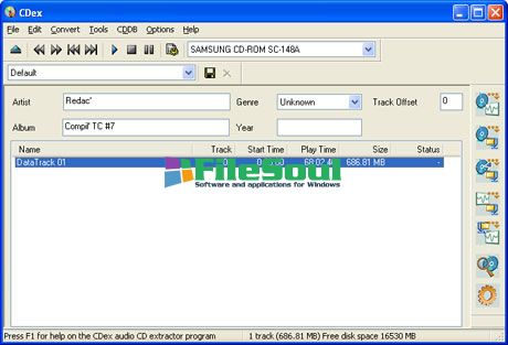 CDex is a utility for extracting audio CD on the hard disk and convert them into MP3. It is capable of encoding the tracks to MP3, AAC, OGG, VQF, WAV, WMA and MP2. User can listen to his favorite music without having to insert the CD into the drive and create compilations by selecting only the desired songs to hear. It is not necessary to edit the tags of the songs since CDex will automatically connect to the CDDB database to download the CD information desired to encode.