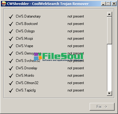 CWShredder is a tool to find and remove traces of CoolWebSearch - a generic name for a wide range of hijackers . It has the ability to find and remove all traces of your system, bookmarks installed on by pornographic sites, home page modified without your permission. It can redirect the mistyped URL, redirects during visits Google redirects to related pages.