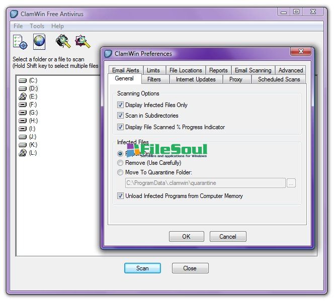 ClamWin does not include real-time protection, but it can be planned for specific analyzes are conducted regularly every week or every hour. If the position is not used regularly, ClamWin can notify you by e-mail to the discovery of an infection.