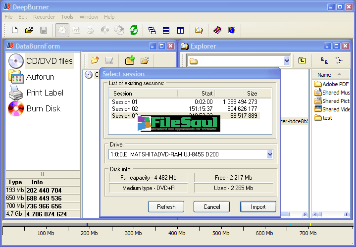 DeepBurner properly handles media with multiple sessions and can burn media in different modes, DAO, SAO and TAO. It is also able to dynamically manage the buffer size on the disk and prevent failure of the prints through compatibility with the Burn-Proof technology.