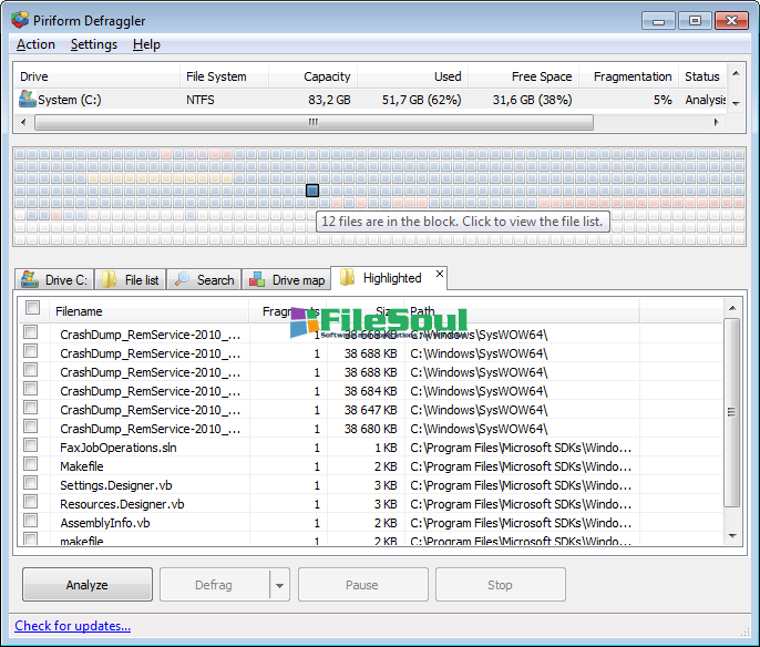 The peculiarity of this program lies in the fact that defragments files and directories that needed without starting the process for the entire drive if it is not necessary.