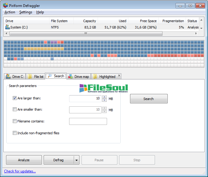 With a clear and user-friendly interface, this utility software is primarily used to defragment the hard drive. The software can be configured according to user needs , being possible to schedule defragmentation at users convenience. This way, the operation does not consume too many system resources . At the appropriate time, defrag runs automatically.