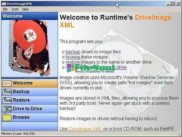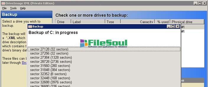 DriveImage XML is a software program developed to save and restore the entire contents of a hard drive by making system images (partitions and logical drives). It allows making a backup of the partitions and of the hard disk to restore the operating system in case of problems.