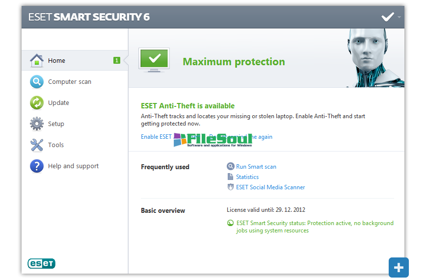 ESET Smart Security is a security suite for computer that consists of Anti-Virus engine, Anti-Spyware, Anti-Rootkit, Anti-Spam, Anti-Theft, Firewall, Parental Control, and Web and Email protection.