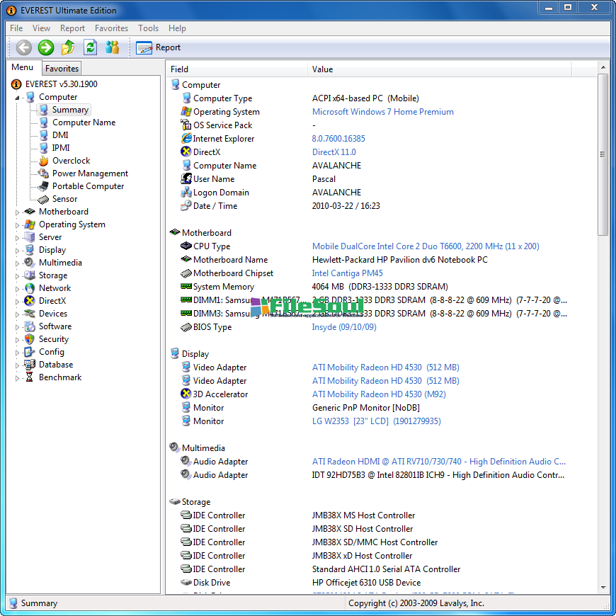 EVEREST Home Edition evaluates and monitors the hardware components of the computer helping to determine which component slows down the computer activity.