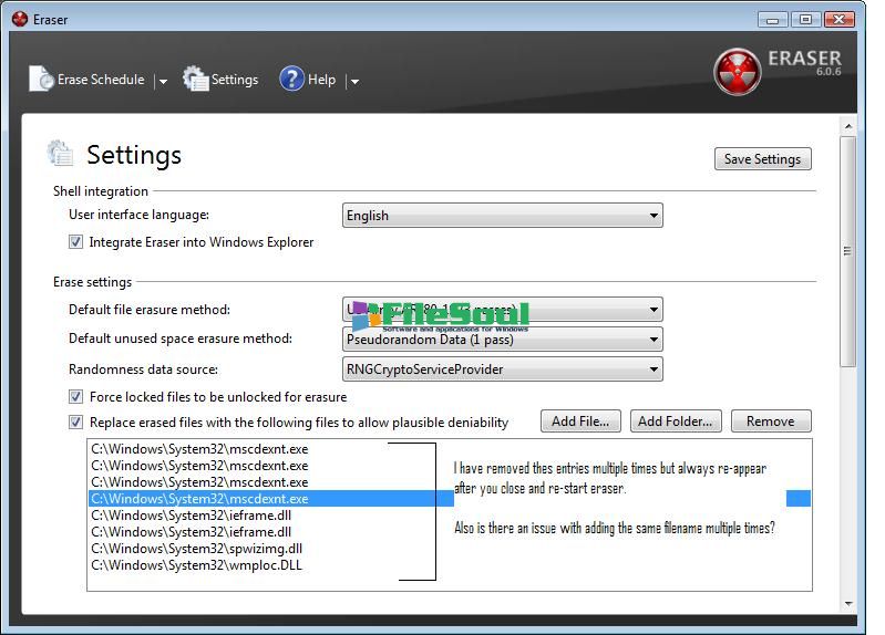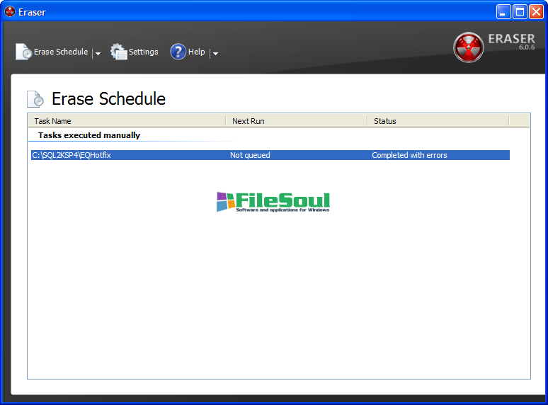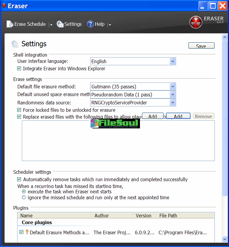 Eraser is a modern security tool which uses the Guttmann proven algorithm to ensure the final deletion of a file. It is used to completely remove sensitive information from the hard drive by overwriting it several times with carefully selected patterns.