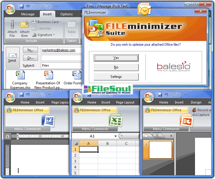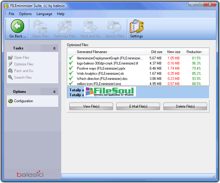 FILEminimizer Suite is the perfect solution when sending large files over email or have attachment size limits restrictions. It effectively optimizes the images, photos or graphics and allows to compress their size.