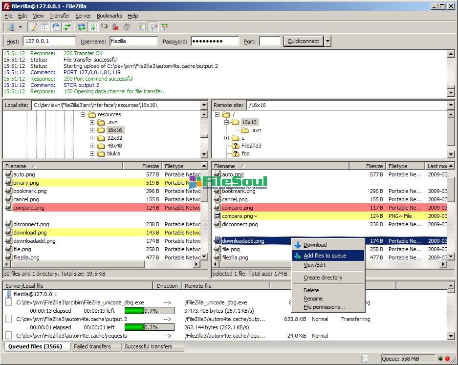 FileZilla include interesting features, including the display of the amount of data transferred and the transfer time in the log window. FileZilla also provides faster access to the function of speed limit transfers and adds support for backspace button on the mouse that feature.
