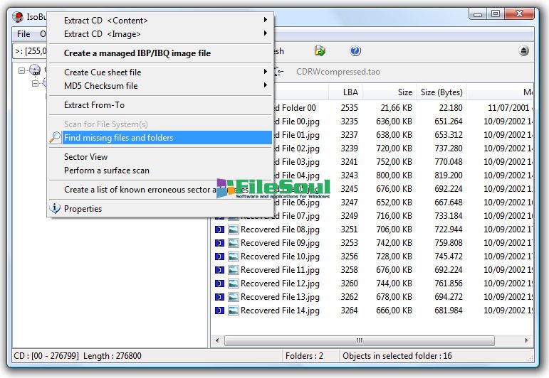 One of the most interesting thing about IsoBuster is its ability to recognize the CD image files namely: DAO (Duplicator), TAO (Duplicator), ISO (Nero, Blindread, Creator), BIN (CDRWin), IMG (CloneCD), CCD (CloneCD) ,CIF (Creator), FCD (uncompressed), NRG (Nero), GCD (Prassi), P01 (Toast), C2D (WinOnCD), CUE (CDRWin), CDI (DiscJuggler) CD (CD- i OptImage), GI (PrimoDVD) PXI (PlexTools), MDS (Alcohol), MDF (Alcohol), VC4 (Virtual CD) B5T (BlindWrite) B5i (BlindWrite) DMG (Apple Macintosh) IBP (IsoBuster) or IBQ (IsoBuster).