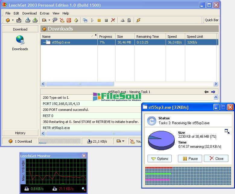 When it happens that the current download is interrupted due to a power failure or connection, LeechGet detects the source file and resumes the download where it was last time. Apart from the download LeechGet can also handle the transfer of files to websites, blogs or servers using the FTP client. This tool is easy to configure and supports the use of a proxy.