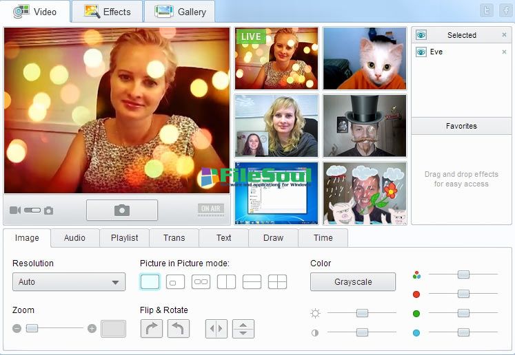 Manycam is a tool for managing a webcam that is usable on multiple. It allows to enhance the video broadcast from the webcam. In fact, when the webcam is used in a private chat or even a discussion group, user can add animated pictures, small visual effects, background colors, text or date and time in the box visual. User can order different animations directly from his communications software.