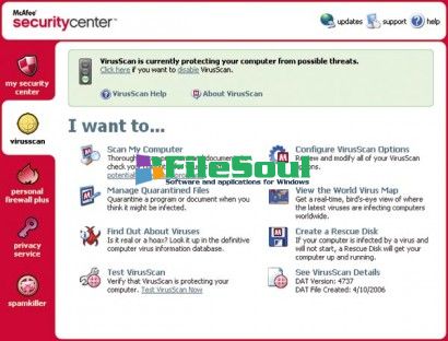 McAfee VirusScan is able to recognize many viruses, check the downloaded files, e-mails, the Internet, floppy disks, CD-ROM or other media attached to the computer and able to infect so to destroy them altogether.