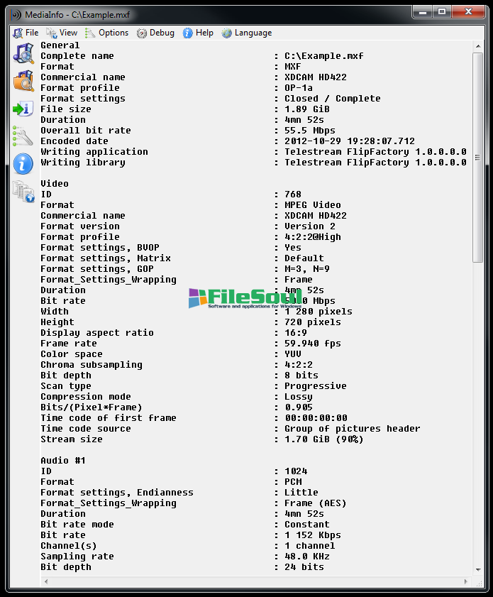 MediaInfo is able to provide lots of information, including the number of frames per second, the rate used, the sampling frequency audio tracks or the number of channels available. MediaInfo also integrates to the context menu of Windows Explorer to access information from a sequence with a few clicks.