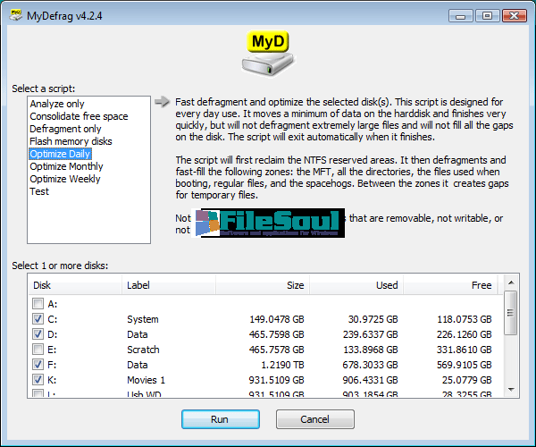Despite its poor interface, MyDefrag is a faster and lighter solution for Windows defragmenter.