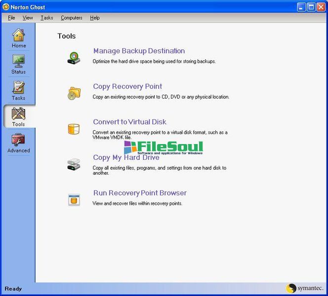 Using the most powerful method to avoid wasting time to re-install the system in case of major problems such as the proliferation of a virus or a severe error in the operating system, Norton Ghost automatically backs up and recovers all data stored on the computer.