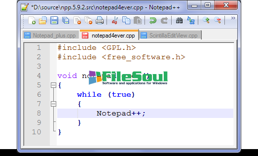 Notepad + + is a source code editor which "Syntax Highlighting" and "Syntax Folding". It supports languages like: c, c + +, java, html, xml, php, javascript, makefile, ASP, VB, SQL, Objective-C etc. Notepad + + is coded in C + + with win32api (without MFC strictly) to be small and efficient source code editor.