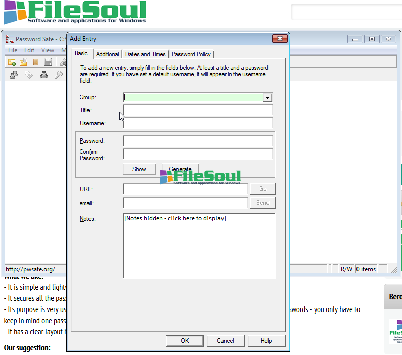 Editor's review: Password Safe is your passwords guardian offering a very convenient way to store and manage your passwords especially if you are dealing with many important accounts that requires remembering passwords. It is advisable to keep in mind all your passwords but if the number of your password overcomes your memory, keeping in mind just ONE master password that offers the access to the rest of your password is a great solution.