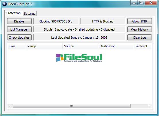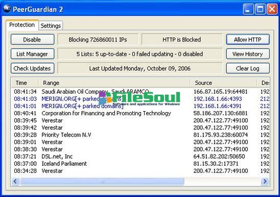 PeerGuardian is a tool designed to protect the computer when connected to a peer-to-peer network, acting as a firewall (IP blocker) for Windows. The software is able to block IP address ranges (government, unhealthy websites, hackers ...) to protect users privacy and computer from hacker intrusions. It prevents the banned IP to download the files located into the computer.