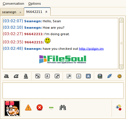 Pidgin offers several smileys to liven up the discussion. As the software supports adding plugins, user can also download more smileys on the Internet to enrich the library.