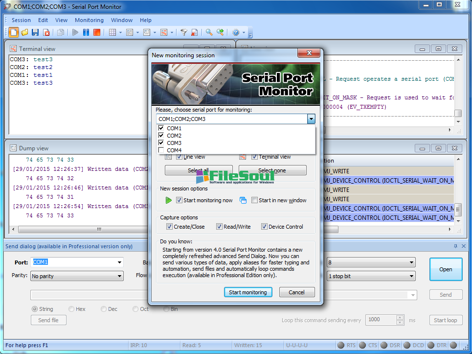 Serial Port Monitor is a professional utility developed to help you monitor all serial port in your system. If you are a developer, then this application is very useful to you, helping to track any problem that may appear while your application is developed; you can also test and optimize your serial devices. You are able to monitor the RS232/422/485 COM serial port activity, having the possibility to log and analyze it. The application can be used for monitoring serial data exchange between serial devices and any Windows application, offering advanced filtering and search options, professional built-in terminal and data exporting options. With a simple and intuitive interface, it allows you to analyze serial port activity by connecting to a COM port, already opened by any application and receiving all the information about it, monitor several COM-ports in the same time, collecting information about the way your applications interact with two or more ports and a few devices concurrently within one session, emulate data sending to a serial device.
