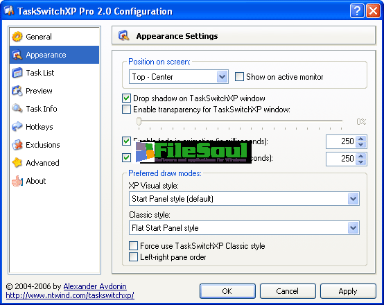 A setup menu is available, to adjust the transparency, the positioning of the window or to specify whether TaskSwitchXP launches automatically at startup.