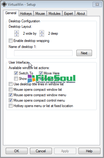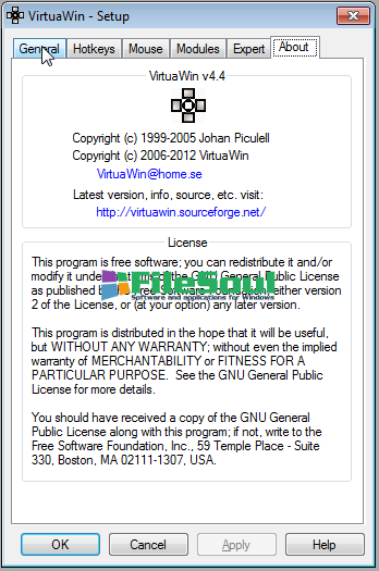 VirtuaWin is handy utility software that offers an elegant solution to organize your application over several desktops. The program can create multiple versions of your desktop where you can run different programs and switch between them when needed, as Unix users know for some time this useful way to manage applications. VirtuaWin lets users create up to 20 different, highly customizable virtual desktops and work on most Windows operating systems (Win9x/ME/NT/Win2K/XP/Win2003/Vista/Win7/Windows8). With a simple, intuitive yet attractive interface, VirtuaWin becomes an essential part of your productive workflow, offering many interesting features and highly customizable and extensible options.