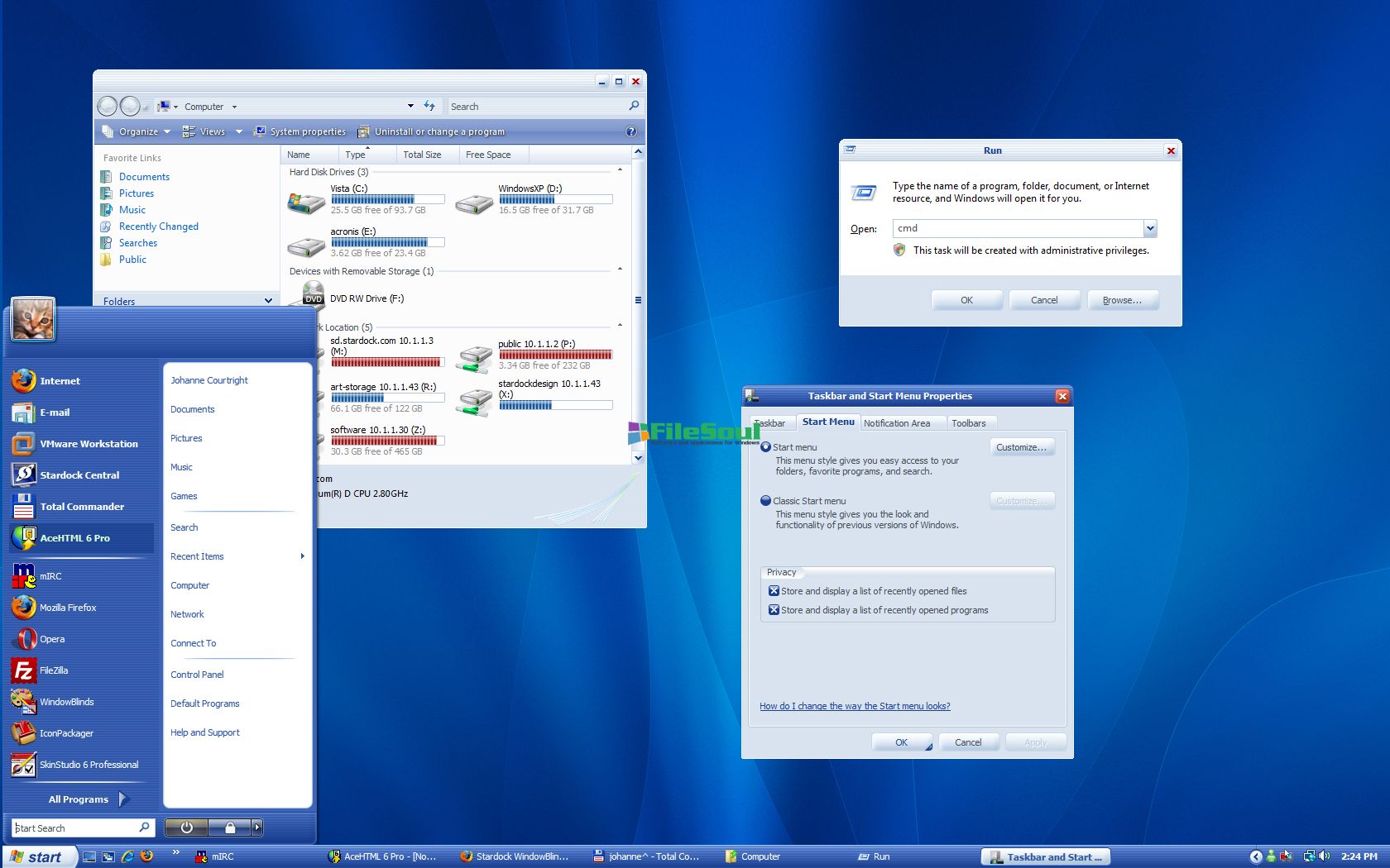 The software comes with a set of skins that allow you to change the appearance of Windows with a single click. New styles are added regularly and it is possible to download from the publisher's website.
