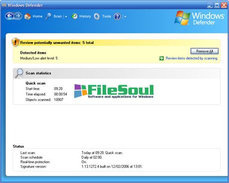 Although it requires a genuine Windows, Windows Defender is a powerful tool that detects spyware and unsolicited programs. It integrates with Windows to protect the computer by identifying and eradicating spyware on the system: pop-ups, slow performance, security threats caused by spyware and other unwanted software.