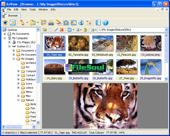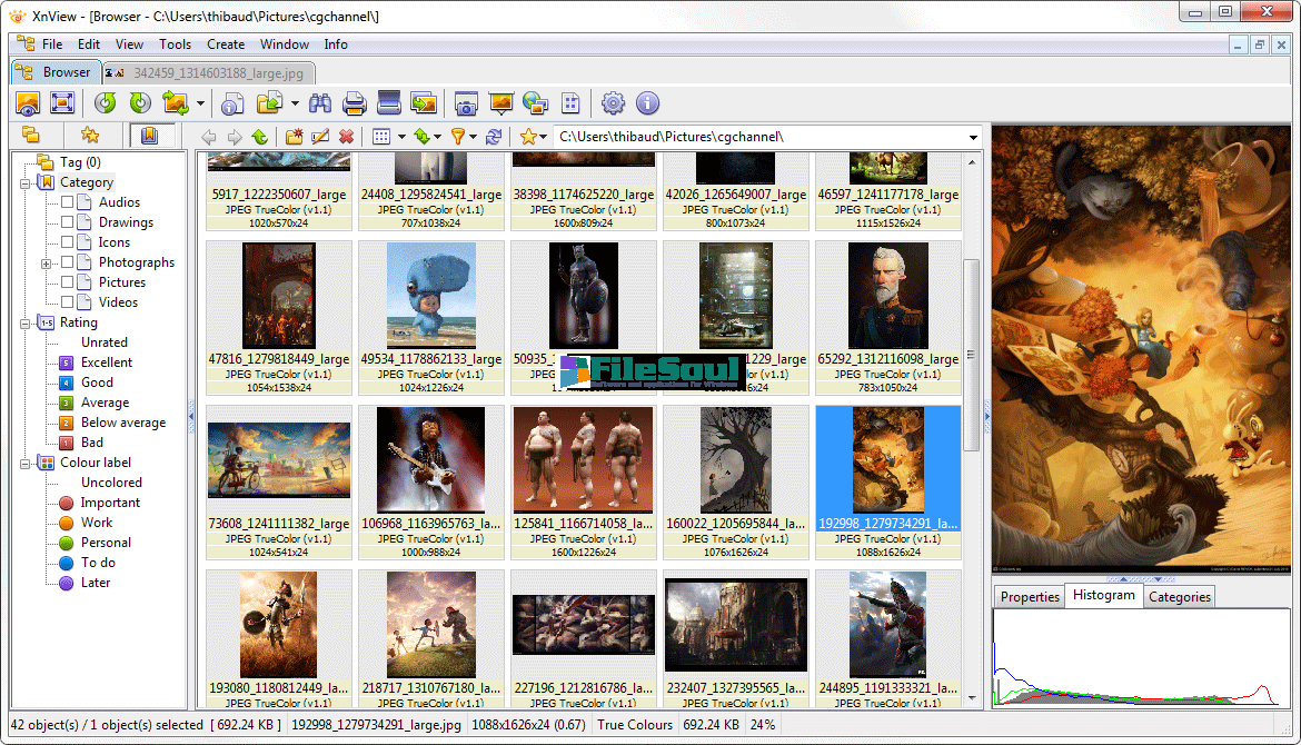 XnView is a software specially designed to enable user to view any graphic image. This software can recognize more than 500 file formats including 500 in reading and 50 recording; it can read standard formats such as JPG, GIF, TIFF, GMP, specific formats such as SIL, BOB, or proprietary formats such as Photoshop, Corel Draw, etc. XnView also allows to edit images, offering the possibility to crop an image, rotate it, redefine colors, and more. User can also add filters and apply effects . Besides playing all files in these formats, XnView is a tool that can perform bulk operations on the files such as batch conversion file, reducing the size, the application of filters, and many others. This software is able to use Photoshop filters, to make screenshots and create HTML galleries.