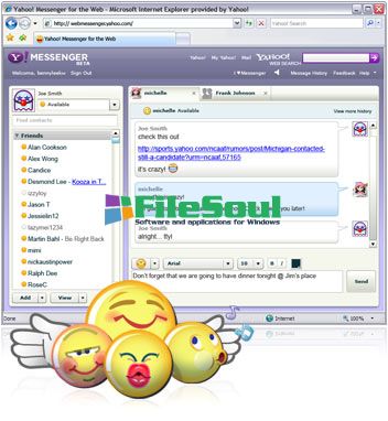 Yahoo! Messenger is a communication software that allows to discover the new look of instant messaging software. In addition to skins, colors and more design increasingly expressive emoticons, there are features such as communication module PC to PC telephony (VoIP), sending SMS, installing plugins to access quickly interactive services, sharing photos on Flickr and other documents, video conference via webcam and much more. User can always discuss freely with friends in private conversations (even with Windows Live Messenger) or internet chat, manage his contacts and profile, archive messages, view the history, etc.