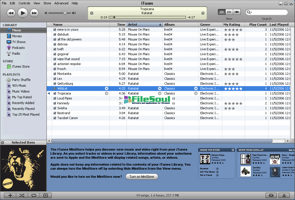 Being a multimedia management software too, iTunes centralizes all the songs, movies and TV shows in one place. iTunes library offers a broad overview of all the songs, movies and other media. The application allows to browse them by album and assign a rating to the songs, from one to five stars, to more easily find the preferred ones.
