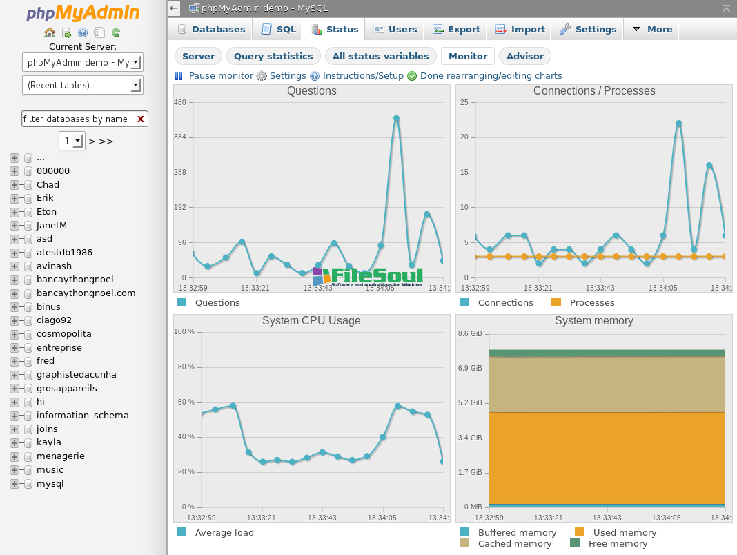 phpMyAdmin supports the formulation of queries directly in SQL saving precious time. It also allows the management of MySQL users and privileges and the stored procedures and triggers.Export data to various formats like CSV, SQL, XML, PDF, ISO/IEC 26300 - OpenDocument Text and Spreadsheet, Word, Excel, LATEX and others can be easily made being a very useful feature.