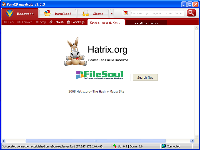 easyMule is a P2P open source software based on eMule, enabling the sharing of resources. Users can search on a dedicated engine to download files. The application speeds up the transfers, allows playback while downloading, sets buffer to protect the hard disk and more.